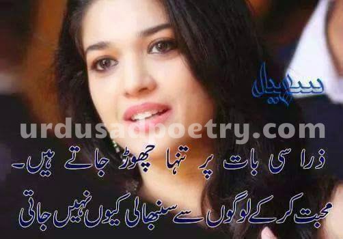 Zara Si Bat Par Tanha Chor Jate Hain by Editorial Staff · Published April 4, 2015 · Updated November 8, 2024 Zara Si Bat Par Tanha Chor Jate Hain Muhabbat Kar K Logon Se Sambhali Kiun Nahi Jati… Share