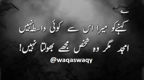 Kehne Ko Mera Us Se Koi Wasta Nahi by Editorial Staff · Published August 31, 2015 · Updated November 8, 2024 Kehne Ko Mera Us Se Koi Wasta Nahi Amjad Magar Wo Shakhs Mujhe Bhoolta Nahi… Share