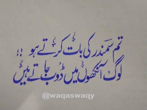 Tum Samandar Ki Bat Karte Ho by Editorial Staff · Published November 27, 2015 · Updated November 8, 2024 Tum Samandar Ki Bat Karte Ho Log Ankhon Me Doob Jate Hain… Share