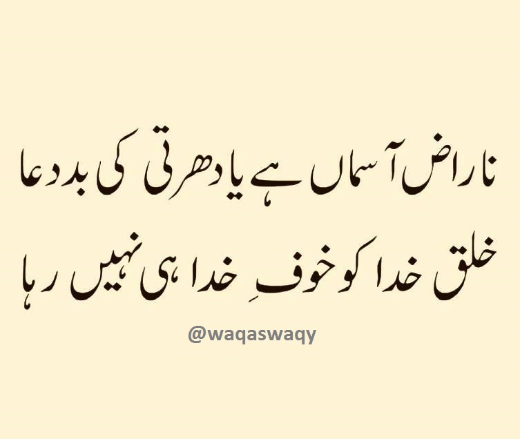Naraaz Asmaan Hai Ya Dharti Ki by Editorial Staff · Published March 1, 2016 · Updated November 8, 2024 Naraaz Asmaan Hai Ya Dharti Ki Bad-Dua Khalq-e-Khuda Ko Khauf-e-Khuda Hi Nahi Raha… Share