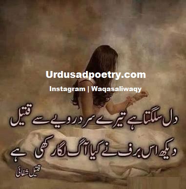 Dil Sulagta Hai Tery Sard Rawaiye Se Qateel by Editorial Staff · Published May 23, 2017 · Updated November 7, 2024 Dil Sulagta Hai Tery Sard Rawaiye Se Qateel Dekh Is Barf Ne Kya Aag Laga Rakhi Hai… Share