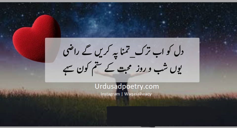 Dil Ko Ab Tark-E-Tamanna Pe Karengy Razi by Editorial Staff · Published August 27, 2017 · Updated November 7, 2024 Dil Ko Ab Tark-E-Tamanna Pe Karengy Razi Yoon Shab-O-Roz Muhabbat K Sitam kon Sahey… Share