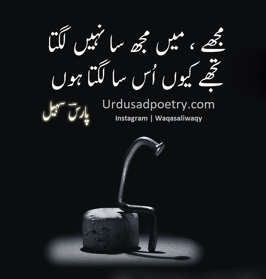 Mujhe Main Mujh Sa Nahi Lagta by Editorial Staff · Published September 14, 2017 · Updated November 7, 2024 Mujhe Main Mujh Sa Nahi Lagta Tujhe Kiun Us Sa Lagta Hun… Submitted By: Paaris Sohail Share