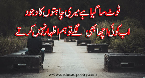 Toot Sa Gaya Hai Meri Chahato Ka Wajood by Editorial Staff · Published April 30, 2018 · Updated November 7, 2024 Toot sa gaya hai meri chahato ka wajood Ab koi acha b lage to ham izhaar nahi karte Share