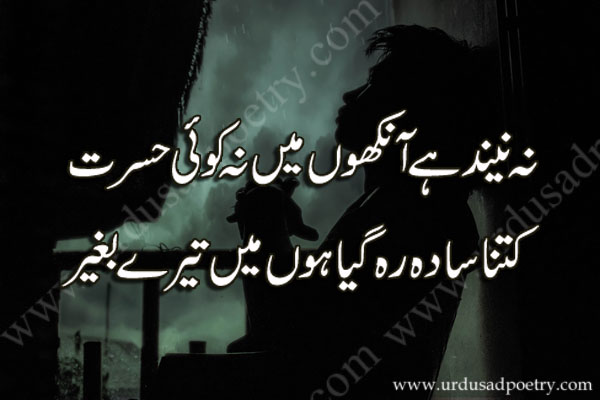 Na Neend Hai Ankhon Main Na Koi Hasrat by Editorial Staff · Published May 2, 2018 · Updated November 7, 2024 Na neend hai ankhon main na koi hasrat Kitna sada rah giya hon main tere baghair Share