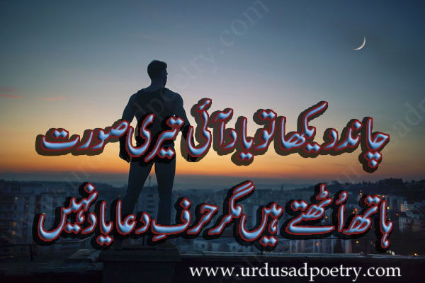 Chand Daikha Tu Yaad Ayee Teri Soorat by Editorial Staff · Published June 14, 2018 · Updated November 7, 2024 Chand daikha tu yaad ayee teri soorat Haath uthtay hain magar hurf-e-dua yaad nahi Share