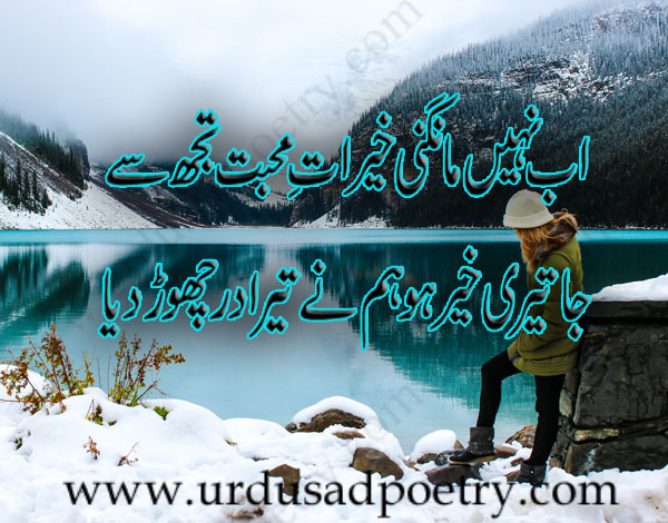 Ab Nahi Maangni Khairaat-E-Mohabbat Tujh Se by Editorial Staff · Published July 20, 2018 · Updated November 7, 2024 Ab nahi maangni khairaat-e-mohabbat tujh se Ja teri khair ho hum ne tera dr chor diya Share