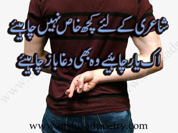 Shaeri Ke Liyay Kuch Khaas Nahi Chahiye by Editorial Staff · Published July 15, 2018 · Updated November 7, 2024 Shaeri ke liyay kuch khaas nahi chahiye Ik yaar chahiye wo bhi daga baaz chahiye Share