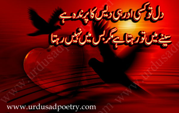 Dil Tu Kisi Aur He Dais Ka Parinda Hay by Editorial Staff · Published August 3, 2018 · Updated November 7, 2024 Dil tu kisi aur he dais ka parinda hay Seenay main tu rehta hay magar bus main nahi rehta Share
