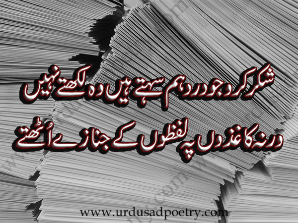 Shukar kero jo dard hum sehtay hain wo likhtay nahi