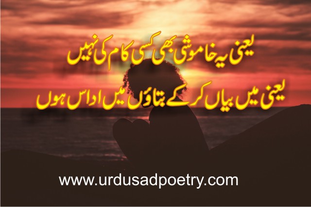 Yani Ye Khamooshi Bhi Kisi Kaam Ki Nahi by Editorial Staff · Published August 19, 2018 · Updated November 7, 2024 Yani ye khamooshi bhi kisi kaam ki nahi Yani main biyan kerkay bataon, main udaas hoon Share