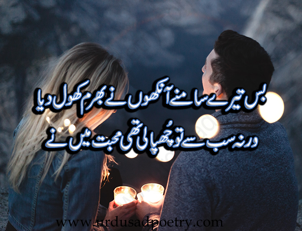 Bus Tere Samne Ankhoon Ne Bharam Khol Dia by Editorial Staff · Published September 4, 2018 · Updated November 7, 2024 Bus tere samne ankhoon ne bharam khol dia Warna sub se to chupai thi mohabbat main ne Share