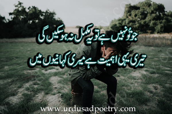Jo Tu Nahi Hai To Yeh by Editorial Staff · Published September 26, 2018 · Updated November 7, 2024 Jo tu nahi hai to yeh mukammil na ho sake gi Teri yahi ahmiyat hai meri kahanion main Share