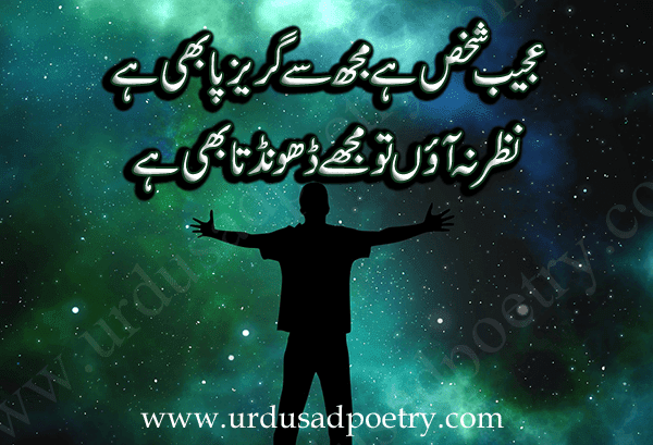 Ajeeb Shakhs Hay Mujh Se Graizpa Bhi by Editorial Staff · Published October 31, 2018 · Updated November 7, 2024 Ajeeb shakhs hay mujh se graizpa bhi hay Nazar na aoon tu mujhay dhoondta bhi hay Share