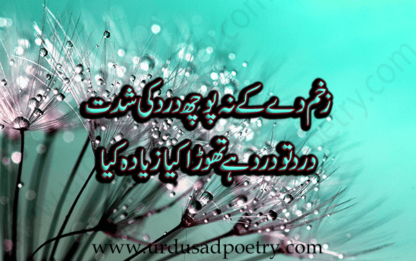 Zakham De Ke Na Pooch Dard Ki Shiddat by Editorial Staff · Published October 16, 2018 · Updated November 7, 2024 Zakham de ke na pooch dard ki shiddat Dard tu dard hay thara kiya ziyada kiya Share