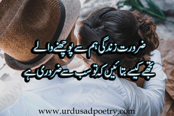 Zaroorat E Zindagi Hum Se Poochne Walay by Editorial Staff · Published October 26, 2018 · Updated November 7, 2024 Zaroorat e zindagi hum se poochne walay Tujhay kaisay batain ke tu sub se zaroori hay Share