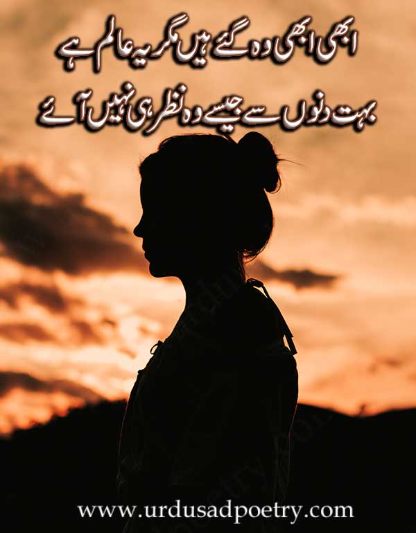 Abhi Abhi Woh Gye Hain Magar Ye Alam Hay by Editorial Staff · Published January 19, 2019 · Updated November 7, 2024 Abhi abhi woh gye hain magar ye alam hay Bohat dinoon se jaisay woh nazar hi nahi aye Share