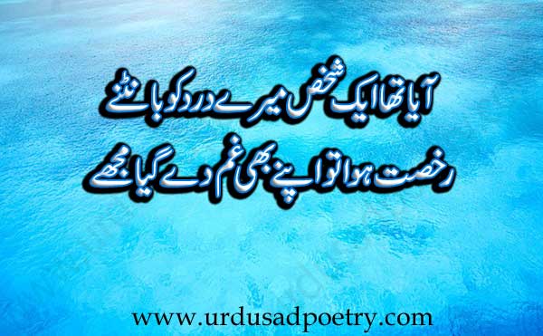 Ayaa Tha Aik Shakhs Meray Dard Ko Baantnay by Editorial Staff · Published January 27, 2019 · Updated November 7, 2024 Ayaa tha aik shakhs meray dard ko baantnay Rukhsat howa tu apney bhi ghum day giya mujhay Share