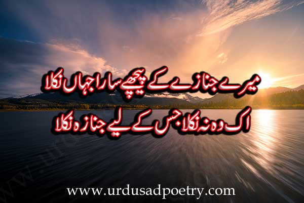 Meray Jinazay Ke Peechay Sara Jahan Nikla by Editorial Staff · Published January 30, 2019 · Updated November 7, 2024 Meray jinazay ke peechay sara jahan nikla Ik woh na nikla jis ke liyay jinaza nikla Share
