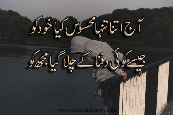 Aj itna tanha mehsoos kiya khud ko by Editorial Staff · Published July 14, 2023 · Updated November 7, 2024 Aj itna tanha mehsoos kiya khud ko Jesay koi dafna ke chala giya mujh ko Share
