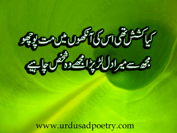 Kiya kashish thi us ki aankhon main mut pocho Mujh se mera dil lar para mujhay woh shakhs chahyeah