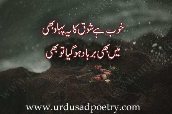 Khoob hai shoq ka yeh pahlu bhi Main bhi barbad ho gya tu bhi