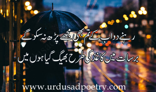 Rehne do ab ke tum bhi mujhy parth na sakon ge Barsat main kagaz ke tarha bhig geya hoon main