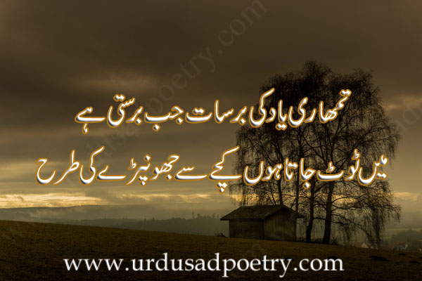 Tumhari yad ki barsat jub barasti hai Main toot jata hoon kachay se jhopray ki tarha