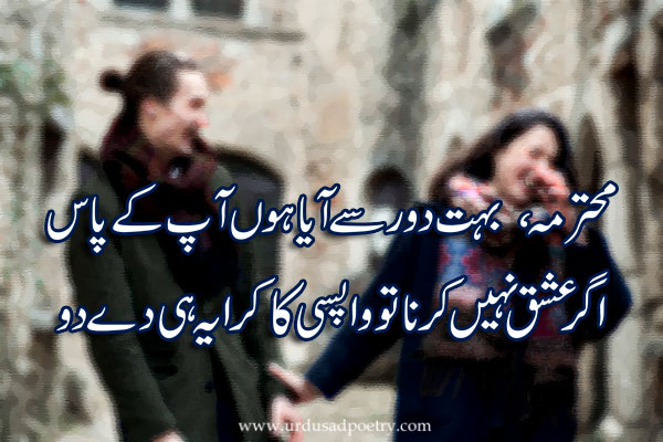Mohtarma, bohat door se aya hoon aap ke pass Agar ishq nahi kerna to wapsi ka kiraya hi de do