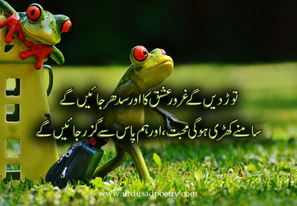 Toord daingay gharoor ishq ka aur sudhar jain gay Saamne khardi hogi mohabbat aur hum pass se guzar jaingay