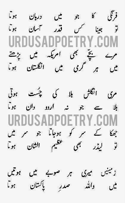 Farangi Ka Jo Main Darbaan Hota To Jeena Kis Qadar Aasaan Hota Mere Bachay Bhi Amreeka Main Parhte Main Har...